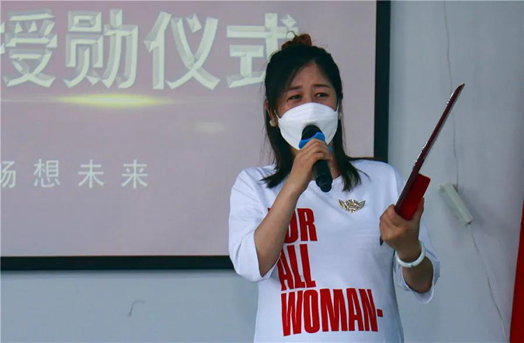 乾港集團(tuán)董事長安總和集團(tuán)網(wǎng)絡(luò)部總經(jīng)理丁總,分別為工作滿五年的元老授予特別定制的勛章,相信這份榮耀將伴隨她們?nèi)〉酶蟮某煽?,在各自崗位中有更好的突破。緊接著乾港集團(tuán)各部門的小伙伴們也為元老們送上了鮮花、祝福和精心挑選的禮物。